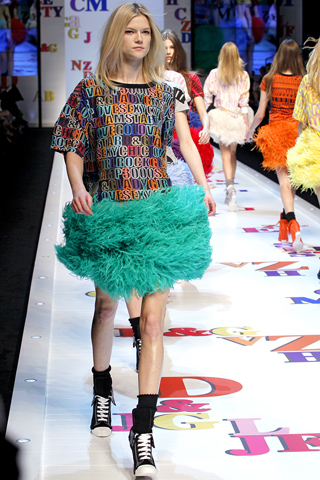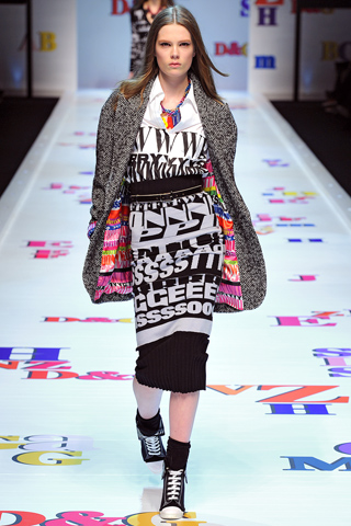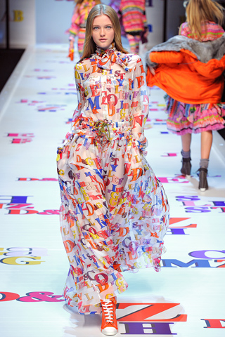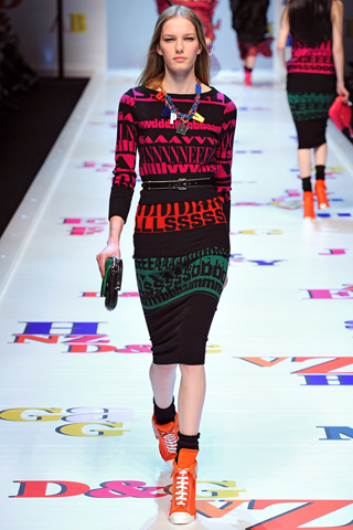 Oh how I miss the 90s and D&G delivered a wonderful blast from the past with their Fall 2011 fashion collection that showed during Paris fashion week. Prints and color were the standout statements in this fall collection.What I loved the most about this collection is that it was one big play on street style. Even in their long, flowing garments that would be red carpet ready if in a solid color and worn with heels, D&G managed to make it young and vibrant with bright prints and shoes to match. D&G ended the show with these beautifully textured mini skirts with printed tops that make you want to get dressed for the after party.With Madonna blasting in the background and all the bright colors, D&G's Fall 2011 collection was by far the funnest show I have seen during all the fashion weeks. View a few stills of this collection after the jump.