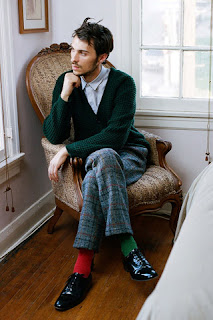 The clothes itself were as quirky as the photographs they were in. Featuring bright, fresh lines reminiscent of the 1960s. Of course with anything item of clothing with a 60s vibe there will be color blocking all over the place. This time it wasn't so obvious that it became the main focal point of the clothes. I really appreciated the fact that this line at suiting fit for the 20 something year old. The last thing on earth any 20 something year old wants to do is look like their parents in suits but this collection offered a fresh take on the suit. Another thing I adored were the shoes, patent leather oxfords and soft beige chelsea shoe's were the stand out for me. Over all this collection was a wonderful little treat of happiness.